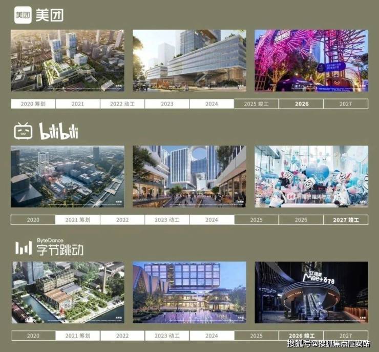 这里汇集了以美团上海科技中心、bilibili全球总部、字节跳动上海滨江中心为代表的一批在线新经济巨头,基本都会在2026~207年完工并入驻。除此以外,还有大量的各类科创公司也在这里办公。
