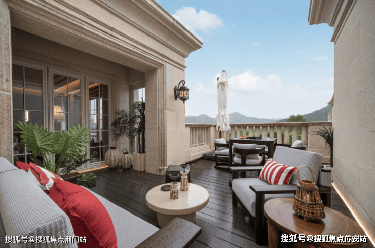 1.色调纯净,度假美学:立面以浅暖米黄石材为底,点缀金属、玻璃,焕新法式奢华艺术气质。罗马柱与宝瓶柱阵列、隽永雕花,凝练地中海浪漫神韵,恢宏典雅。