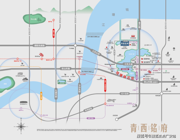 江东大道串联德胜快速路直达武林商圈,钱塘快速路“45分钟时空圈”主城全覆盖的交通路网,苏绍台高速畅达长三角,红十五线与萧山机场无缝衔接,钱塘高铁站通达江浙沪覆盖全国(规划中),萧山机场全国十大机场之一!