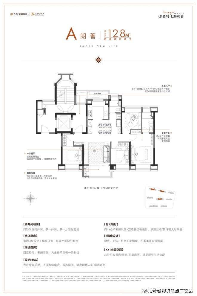 ◎真四开间朝南:2024年上海125-130㎡新房仅约9% 做到真四开间朝南,地铁口4房更少(数据来源网络)。该户型南向总面宽约13米,远超同面积段常见的 10 米面宽,采光视野佳。