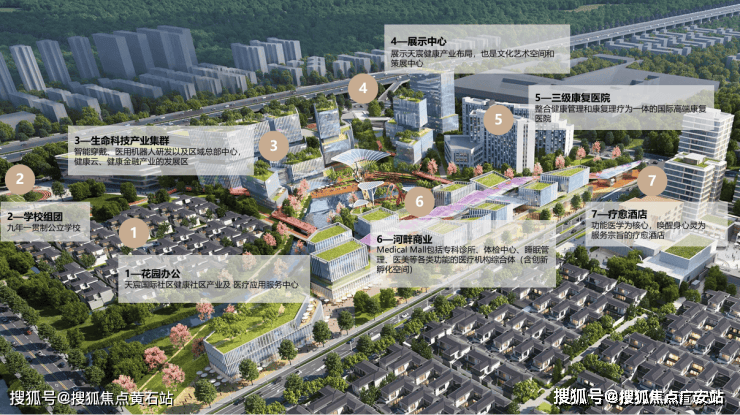 天宸国际社区规划有127席都市合院别墅、三级康复医院(已开业)、酒店、花园办公、大平层、4万方的商业街以及九年一贯制公立学校等。不出家门,即可享受完善的高端生活配套。