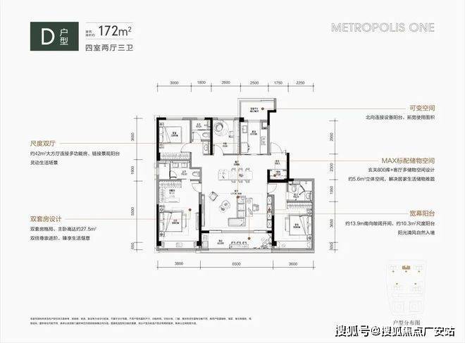 ①约42㎡尺度双厅,约13.9米南向敞阔开间