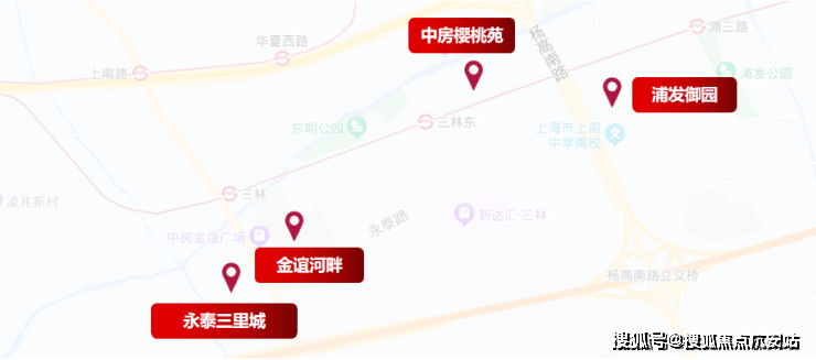 板块内部,由于三林板块规划起步晚,「永泰三里城」周边几乎都是次新电梯房,板块内二手房挂牌均价9万/㎡左右,不少户型较好的楼盘甚至能跑上10w+。