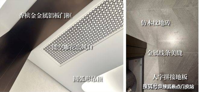 还打造了海派雕花出风口、卧室地面鱼骨拼接、卫生间地面复古拼花、香槟金金属铝板门框、金属踢脚线等元素,整个海派美学居住空间精致有腔调~