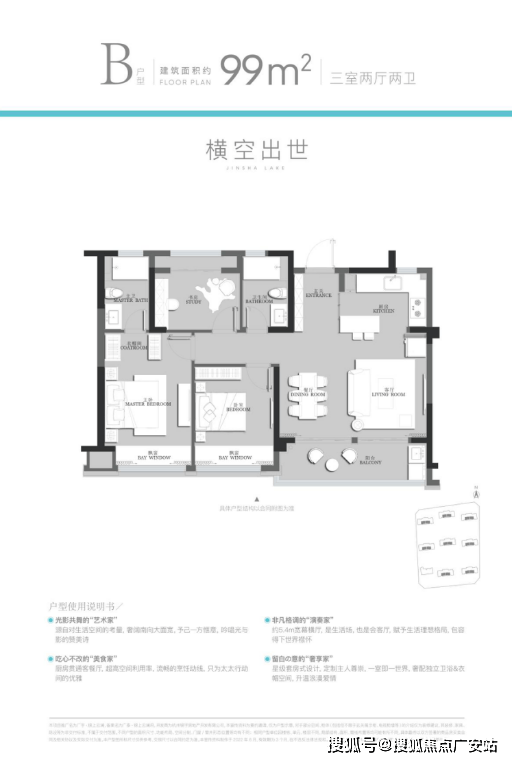 总价239万元建面约99㎡装标3000元/㎡,配置包含全屋中央空调、新风系统等。小区体量不大,规划9栋高层,共918户,主力户型建面有99-121方,及少量160方顶楼房源。锦上云澜建筑外观以城市封面标准设计,配置的是双色铝板外立面,同级豪宅品质。