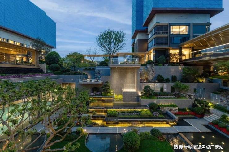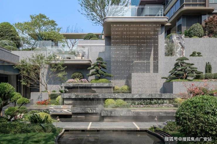 从白玉水晶会客厅的超高玻璃看出去,可见庭院的“每一米”都被不同的景色铺满,镜面般的水系、圆润可爱的灌木丛、昂扬向上的花木以及形似瀑布的金属珠帘等共同组成了灵动的立体图景,宛如置身新加坡parkroyal公园的皇家酒店。