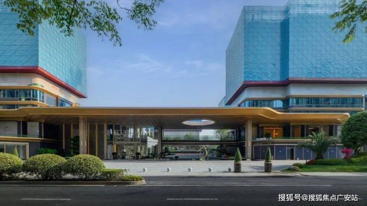 整体的抬高,让约70米宽的鎏金天幕大门头高度达到了约9米,显得格外气势非凡。天桥连接了会客厅、架空层和内部园林。