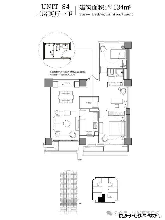 137㎡2+1户型南北朝向(一梯两户)⬇⬇
