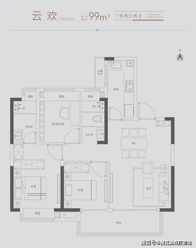 雅致三房:满足三口之家所需,北向房间可改造书房,理想生活一步到位