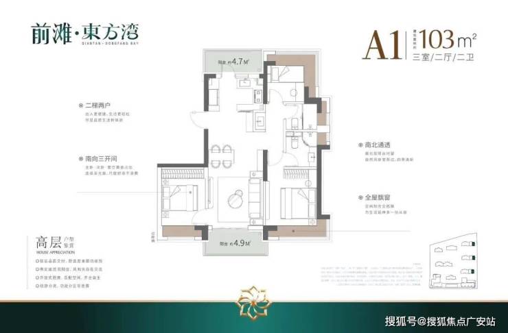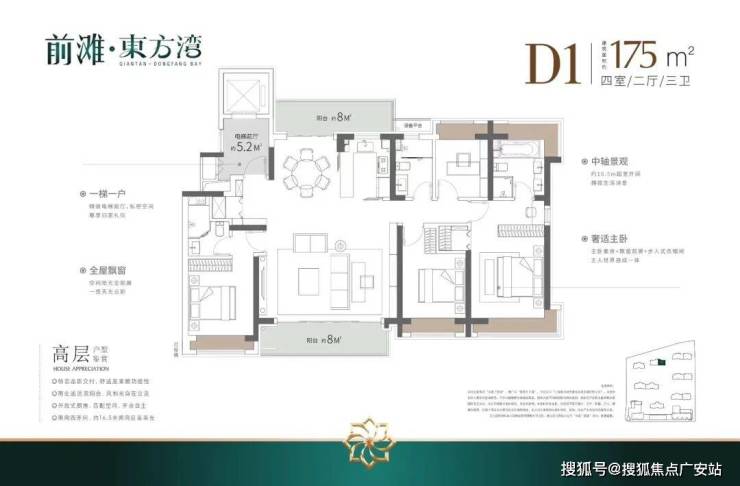全龄段改善户型:103㎡3房起步,满足刚需到改善的不同需求;175㎡4房大户型,主卧套房带270°转角飘窗与独立卫生间,私密性佳