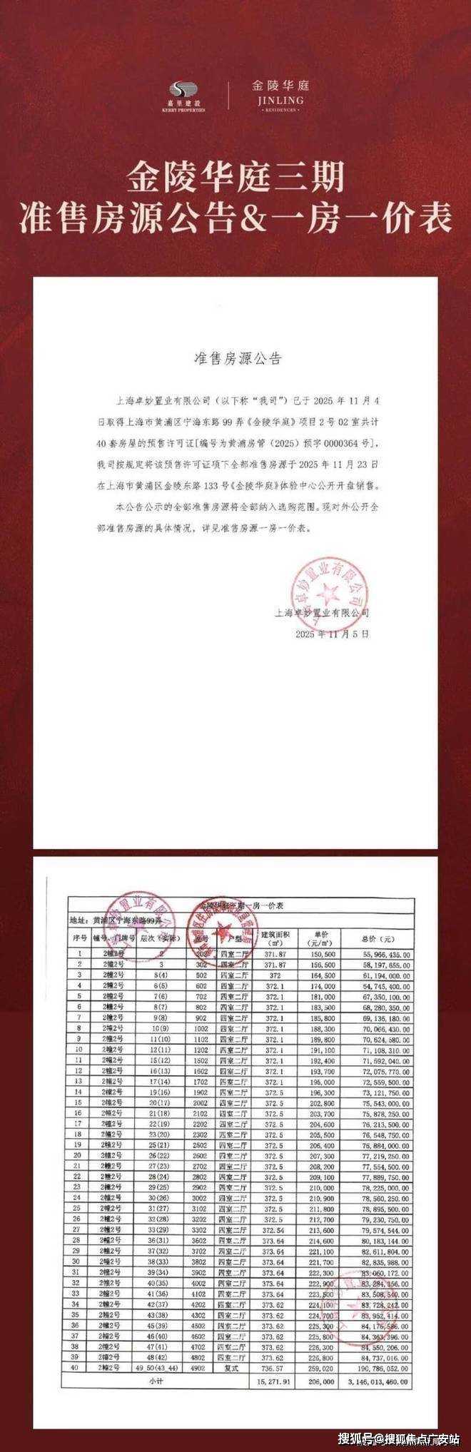 【金陵华庭】一期一房一价表