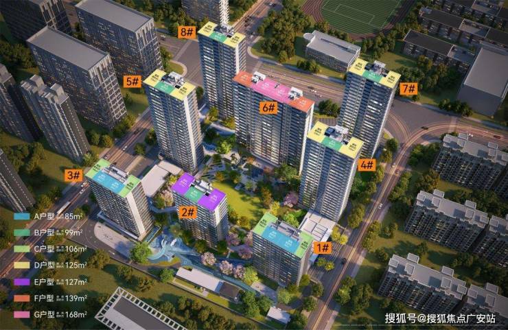 从户型分布看:1幢边套均为106㎡,中间套则是85㎡;4幢边套为125㎡,中间套为99㎡。