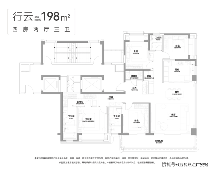 中海狮山云起项目户型设计都是改善大平层,建面约153、183、198、223㎡户型。