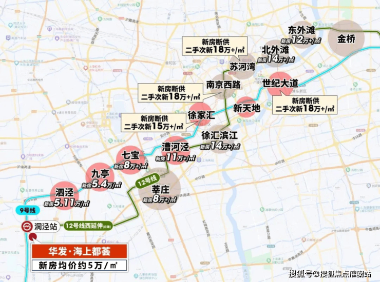 9号线和12号线上,七宝板块、莘庄板块新房已经约8万+/㎡、漕河泾新房约11万+/㎡、北外滩新房更是约14万+/㎡、东外滩12万/㎡。