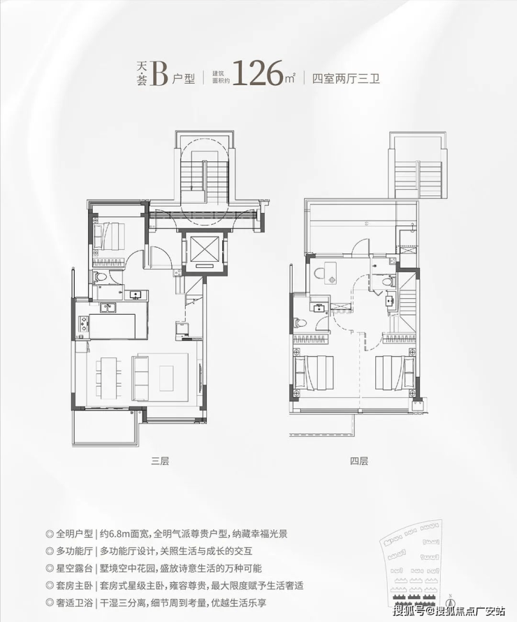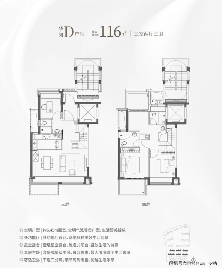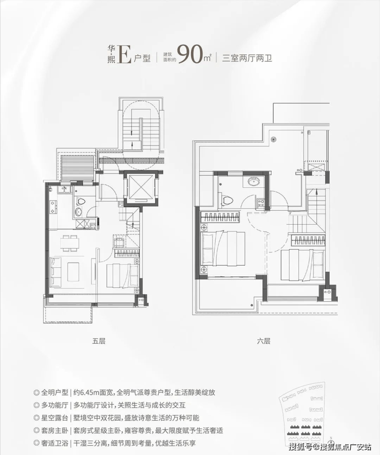 除了高层户型,项目还有建面约90-136㎡叠墅户型。叠加的优点非常多,相较于大平层,叠加区域分割清晰,会客区、休息区等可以明显区分开,互不干扰。同时,居住的私密性强,给到墅居的空间感,得房率相较于高层产品也更高。作为居住业态的高阶形态,舒适度和仪式感也更胜一筹!
