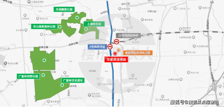 华发海上都荟距离9号线洞泾站直线距离仅约400米,12号线西延伸段(在建)直线距离约500米。