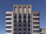 为了实现简洁挺拔的现代风格立面效果,在以经典的三段式设计手法的基础上进行了简化和细化。通过仔细推敲玻璃与型材的玻璃关系,尽量减少立面立挺的密度,保证玻璃面的完整性,还视野于室内;立面也采用铝板、石材、格栅、玻璃的组合,全方位力求立面的高端品质。