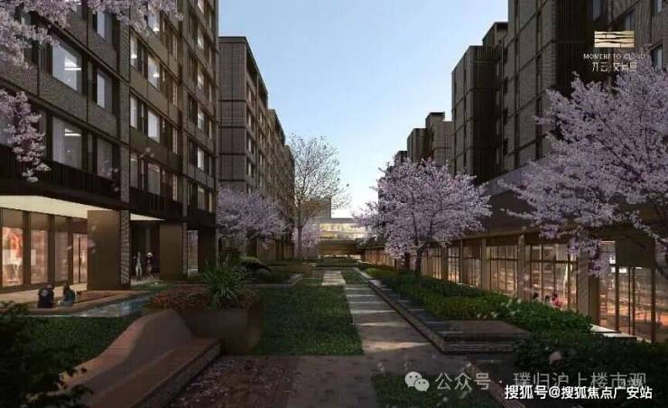 融合式架空庭院,通过借景的手法,将住宅与樱花谷景观相衔接,增加邻里互动空间,重现海派里弄的温馨场景。