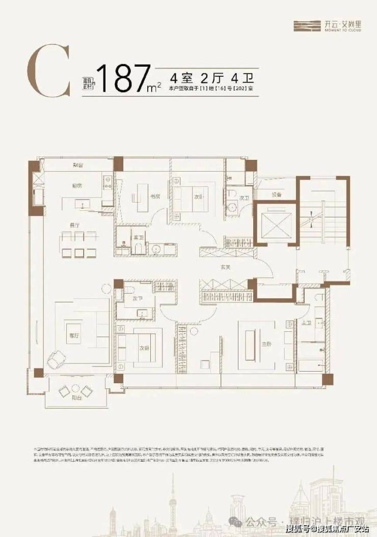 187㎡四房:2 梯 2 户,独立电梯厅,总价约 1700-1800 万