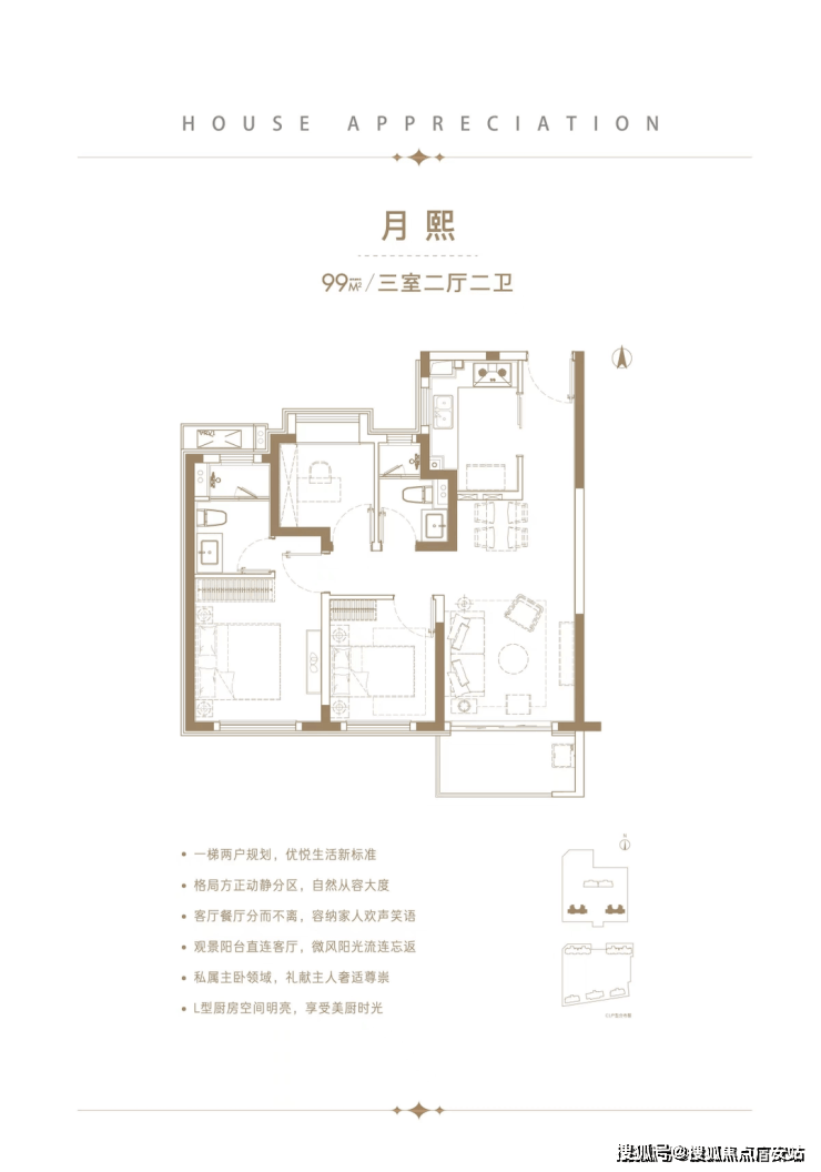 4)三开间朝南、精致三卫设计,安放全家人品质所需。