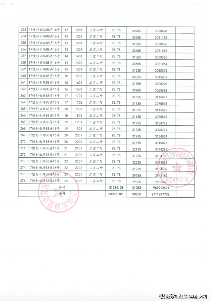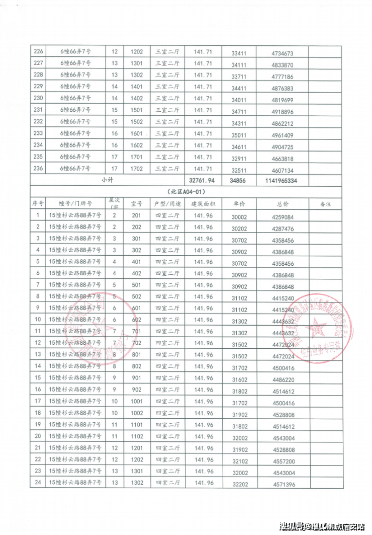 一房一价表