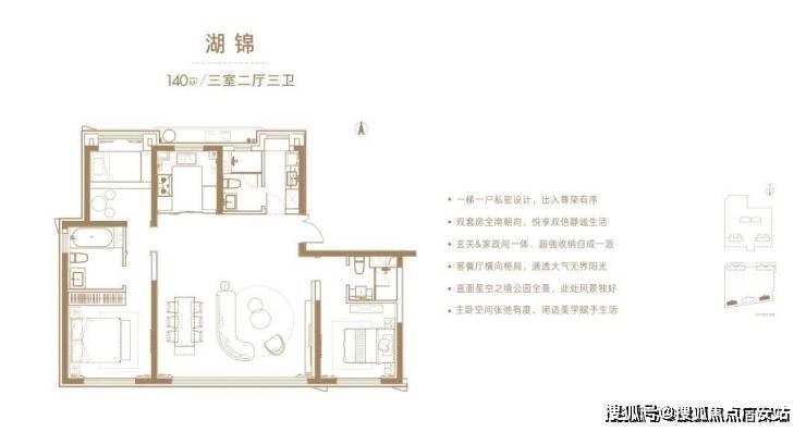 3.公园首排阔景户型:建面约140平3房。
