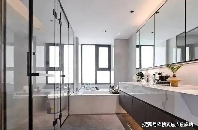 朝南大尺度飘窗带来全明采光,L型超大衣帽空间,女主人的衣服、包包都可妥善归置。值得一提的是,主卫不仅配备了双台盆,并且还做到了四分离设计,洗漱、淋浴、马桶、浴缸都在不同的空间,真正做到了私密而舒适。