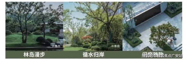 林岛漫步围绕中央景观,以现代艺术手法,打造森林岛屿景观循水归岸呼应外部天然水系,内部设置特色水景,串联不同节点闲庭雅致以树木、水系与局部连廊体系融合,共同组建起社区与居所之间的联通介质。