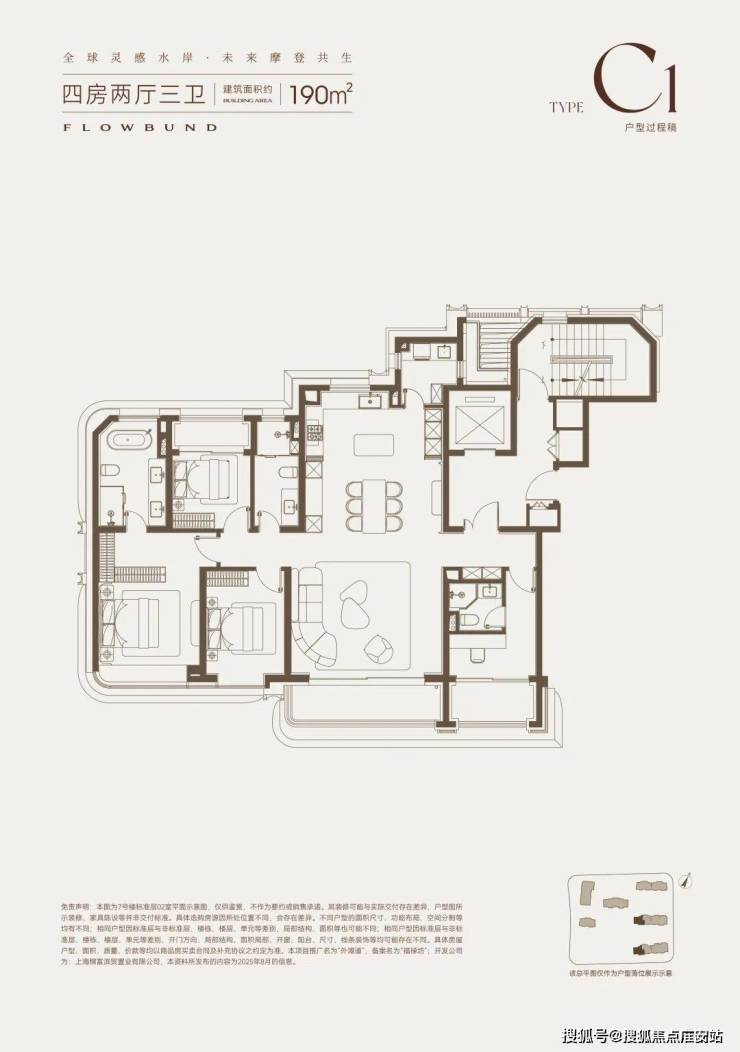 建面约190㎡的4房3卫户型,南向双套房的设计,保障了居住的私密性。