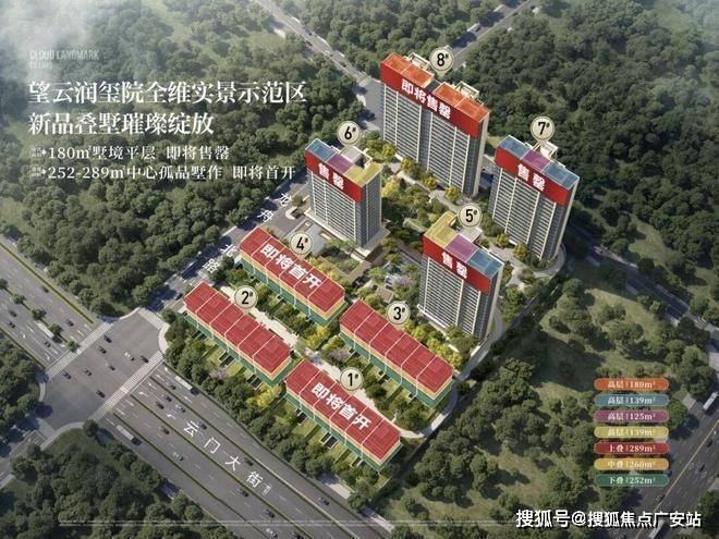 产品类型:包含叠墅(252-289㎡)和180㎡大平层,容积率仅2.1,为云城首个低密墅区。