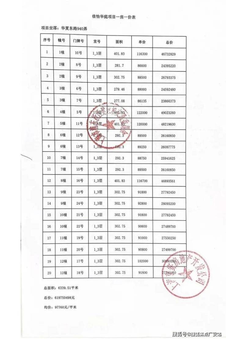 项目一房一价表