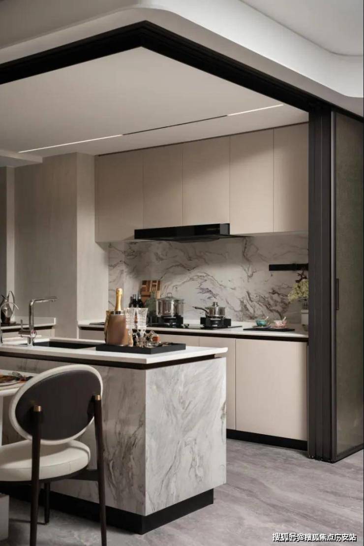集收纳空间,隔断空间、交流空间于一体,厨房不再是独立的烹饪空间,不仅让空间视觉更开阔,更是温馨的社交场所。