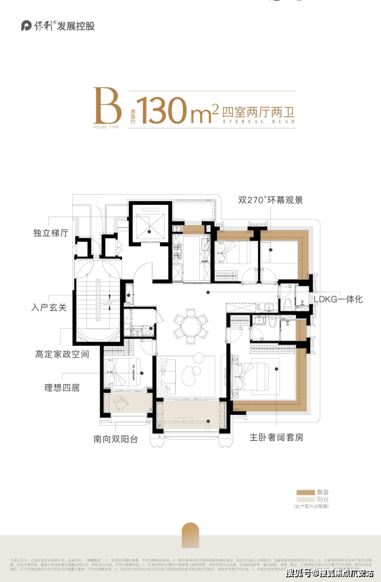 保利外滩曜建面约130㎡的实际使用率做到了约94%,双阳台+双约270°视野+一梯一户独立电梯厅+多飘窗.