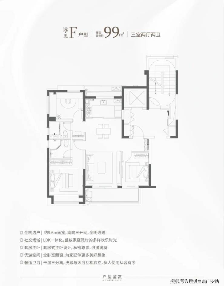 3、楼王H户型:270°环幕江景,绝佳视野和尺度