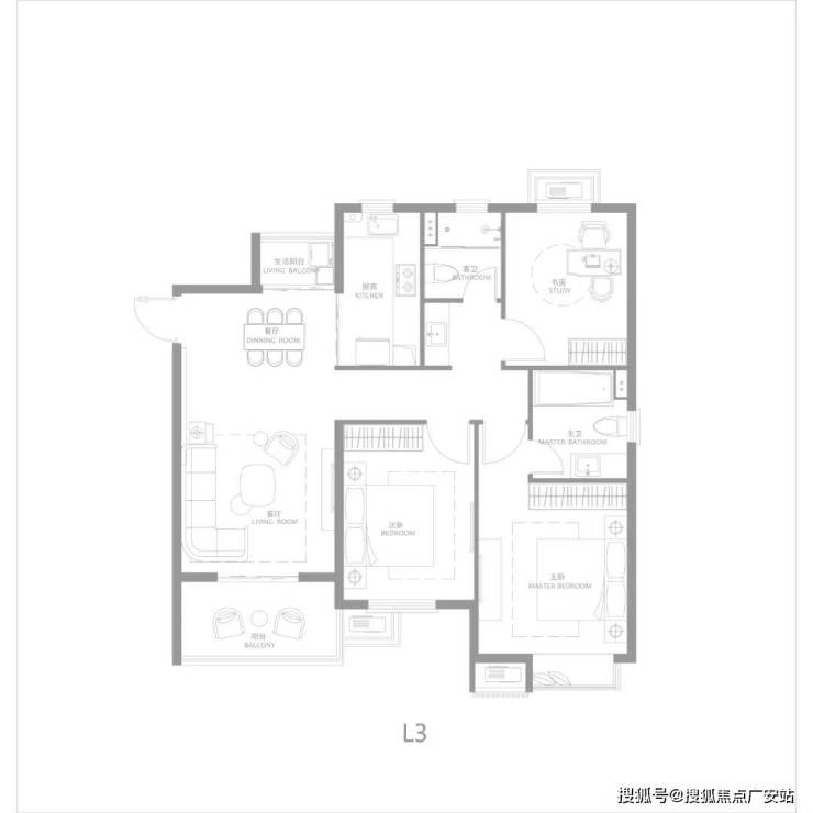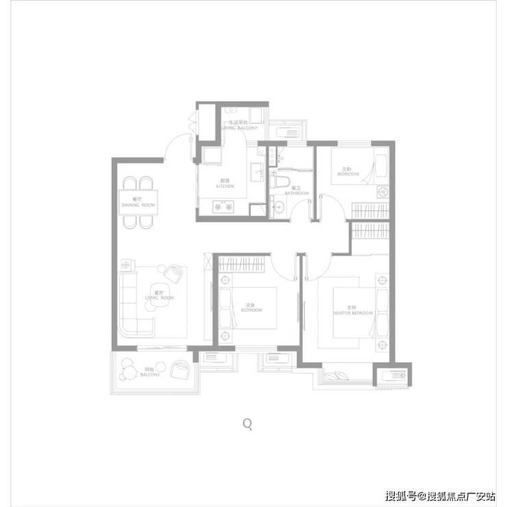 建面约116㎡三房两厅两卫,南北通透,户型方正,主卧大套房,带阳台与独立主卫,更舒适的居住尺度。
