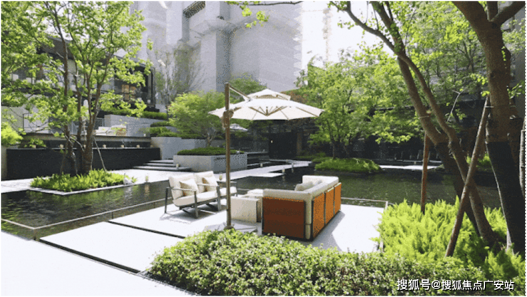 上海松江 华发海上都荟售楼处电话:400-9016-520走进来,便是满眼绿意的 下沉式景观庭院,拾级而上,两侧景观在阳光的照耀下呈现出非凡的光影,还有潺潺流水相伴,带来度假式的沉浸体验。