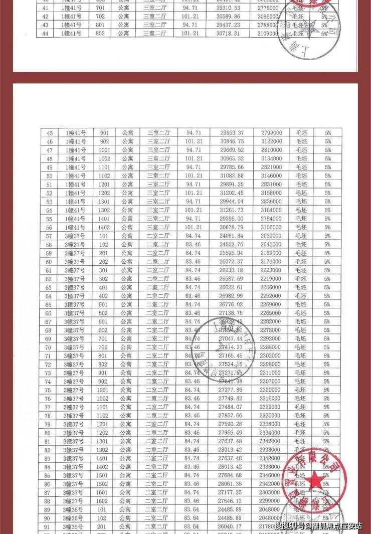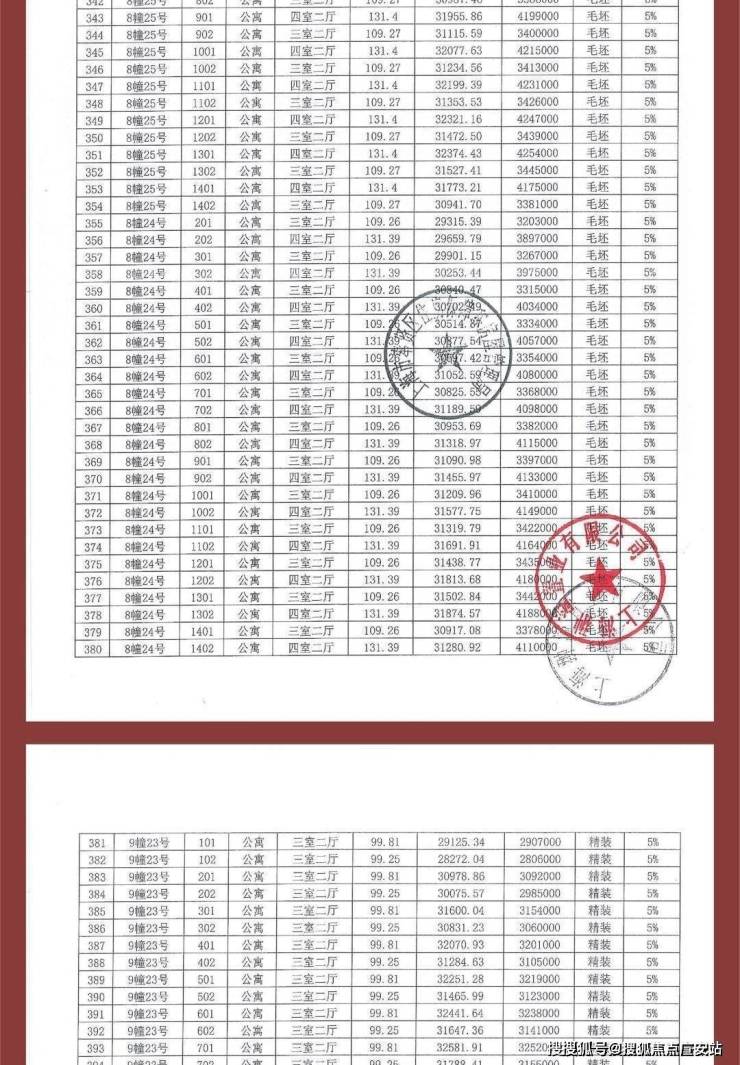 项目一房一价表