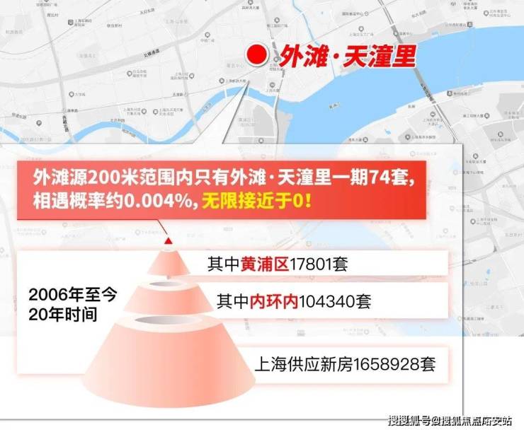 据网上房地产数据显示,2006年至今,近20年的时间全上海供应新房约166万套,其中属于内环内的有10万套,属于黄浦的有1.78万套,而在外滩源200米范围,20年来只有外滩天潼里一期取证的74套(59套超高层+15套风貌别墅),相遇概率仅约0.004%,无限接近于0!