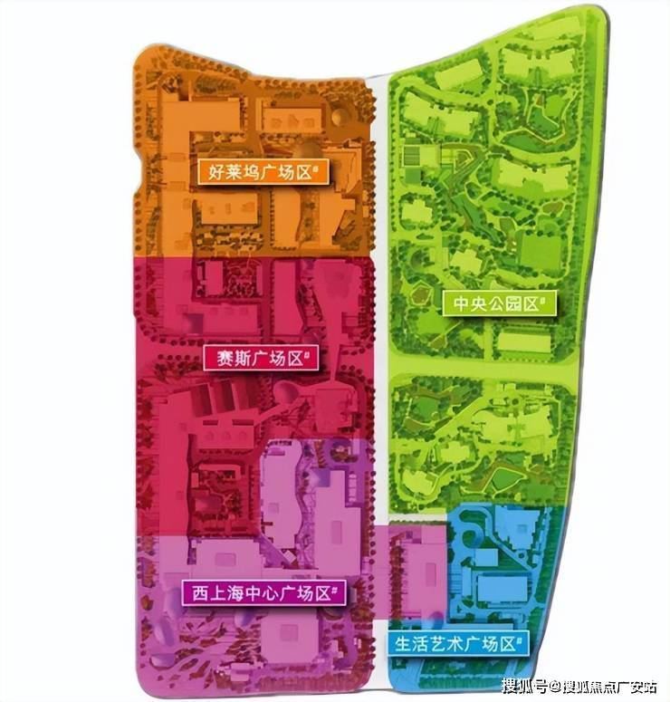 整个高尚领域划分成五大多元化生活主题:以住宅为主的中央公园生活区、提供娱乐设施的好莱坞广场区、设特色餐饮的赛斯广场区、设甲级商厦和星级酒店的西上海中心广场区,及适宜摆放现代艺术品的生活艺术广场区。