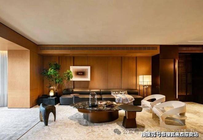 踱步至会客厅,是近100㎡的社交空间,面宽约8米、进深约15米,成就阔绰的家宅尺度。木饰面搭配米色天花,呈✨✨✨【万科中兴傲舍】售楼处热线预约:400-865-7114✔✔✔❤❤❤现出分明舒朗的气质。一字型皮质沙发横向展开,与茶几、坐凳相间,开朗处见逸趣。