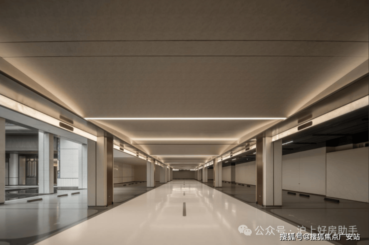 精装车库打破传统车行通道的单调感,并以「中央车站」概念打造枢纽式空间,连通会所与庭院,实现高效通行与私密守护的平衡。地下车库不仅精装交付,还首次提出 “中央车站” 概念。