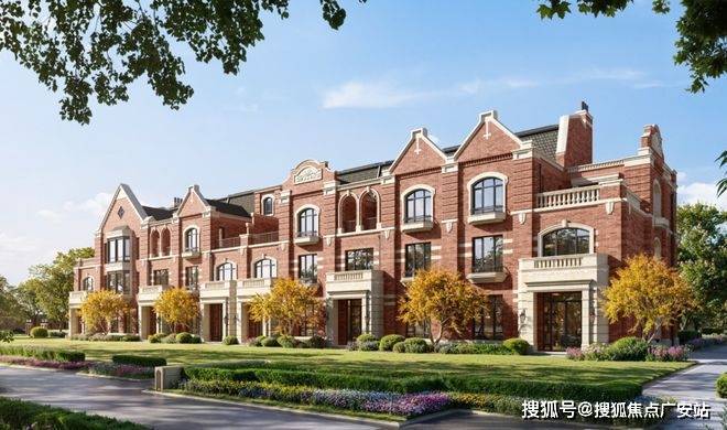 联排别墅采用英式维多利亚建筑风格,红砖与德国米黄干挂石材的搭配,形成温暖且经典的色调;经典长窗/方框窗/八角窗/拱形造型/坡屋面,赋予建筑精巧自然的美学质感。