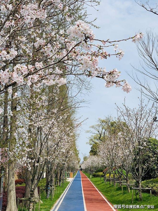 滨河公园内已建有900米樱花漫步道,规划将会建成贯通整个北河岸的2.2公里漫步/跑道,漫步道两侧种满了多季樱花(共9种),其中从日本移植了414棵名贵樱花品种。