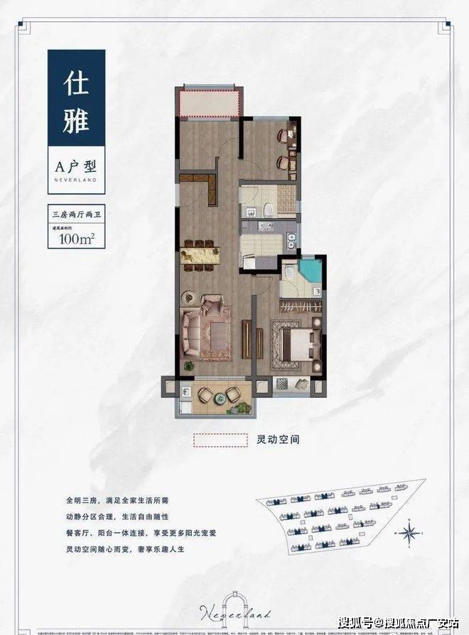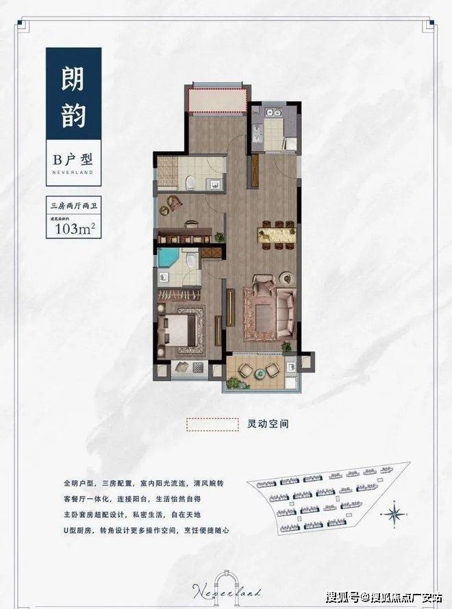 三房配置,主卧套房设计带飘窗,客餐厅一体化,空间利用率更高!