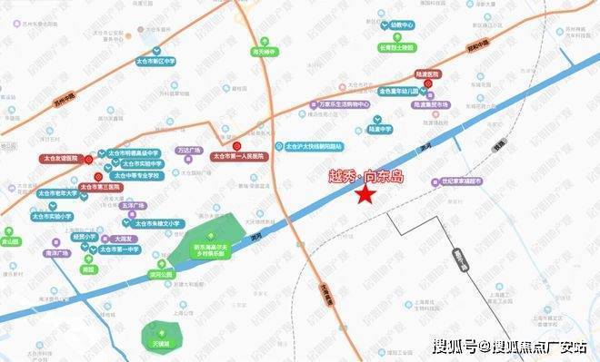 越秀向东岛项目位于太仓与上海嘉定交汇处,拥有上海(嘉定区新和路1558号)、太仓(富达路1号)双门牌号,由国有企业越秀集团越秀地产打造的百万方城市岛居综合大型社区