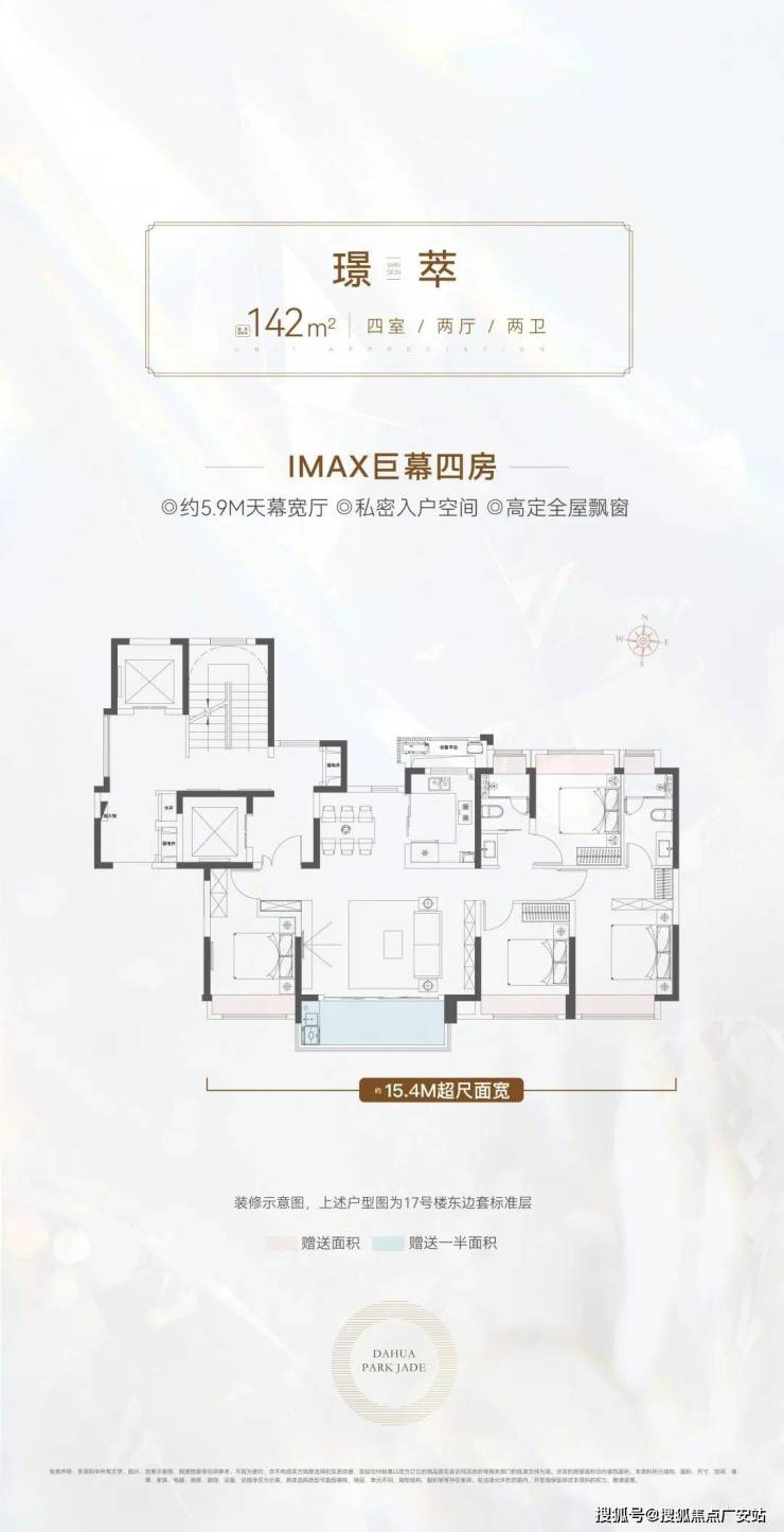 142㎡天幕四房:约5.9M阔尺宽厅/约15.4M南向面宽,宽载巨幕光景