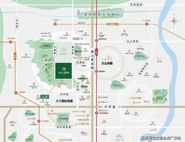 大华公园城市 位于宝山区康宁路长江西路,属中外环间,项目距离1号线通河新村站约1.4公里,可一线直达人民广场、淮海路、徐家汇、莘庄等CBD;距离“换乘王”之称的18号线康宁路站仅约500米。
