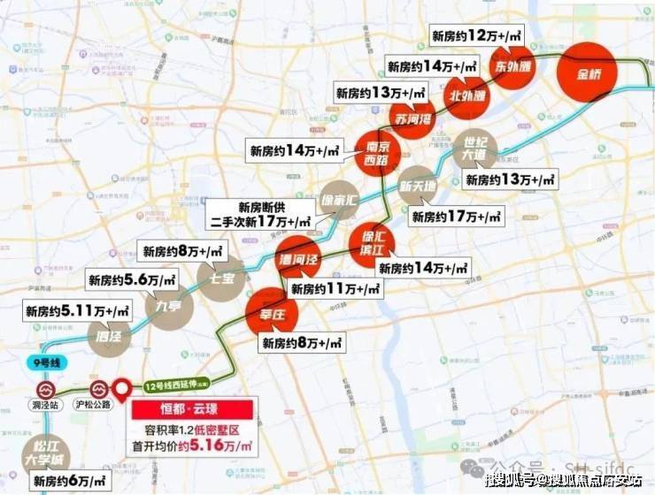 从全市格局来看,12号线可谓是上海的黄金线路,漕河泾、徐汇滨江、南京路、苏河湾、北外滩、东外滩均是上海寸土寸金的CBD,价格早已超过10万大关。而与项目相隔4站的莘庄(七莘路站)目前已经超过8万/㎡, 相比之下容积率1.2的恒都·云璟完全能成为12号线沿线高精尖人群的改善置业目的地!聚焦西南,你会发现恒都·云璟是真的超值。