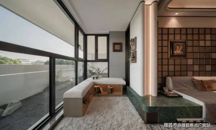 业主在这里可以和家人一起慵懒的晒太阳看云卷云舒,也可以看剧聊天,偷得浮生半日闲的松弛感让人眼前一亮!