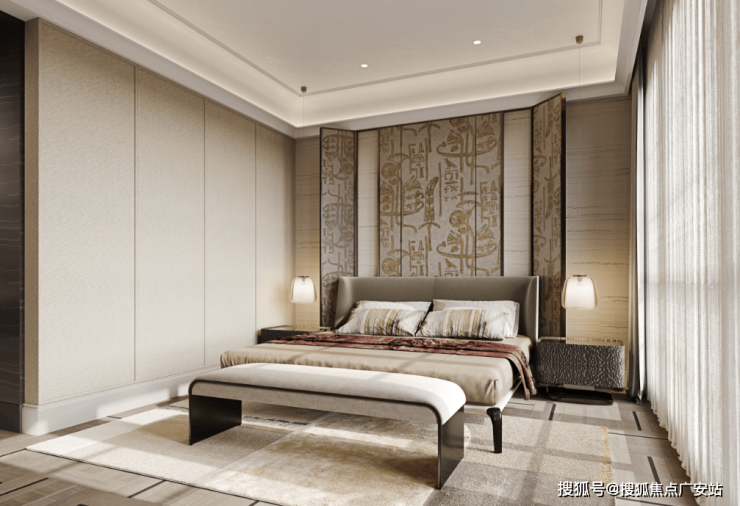 衣帽间、梳妆台、2米大床甚至是浴缸,都可以轻松容纳,再加上超大落地窗的设计,居住舒适度直接拉满!